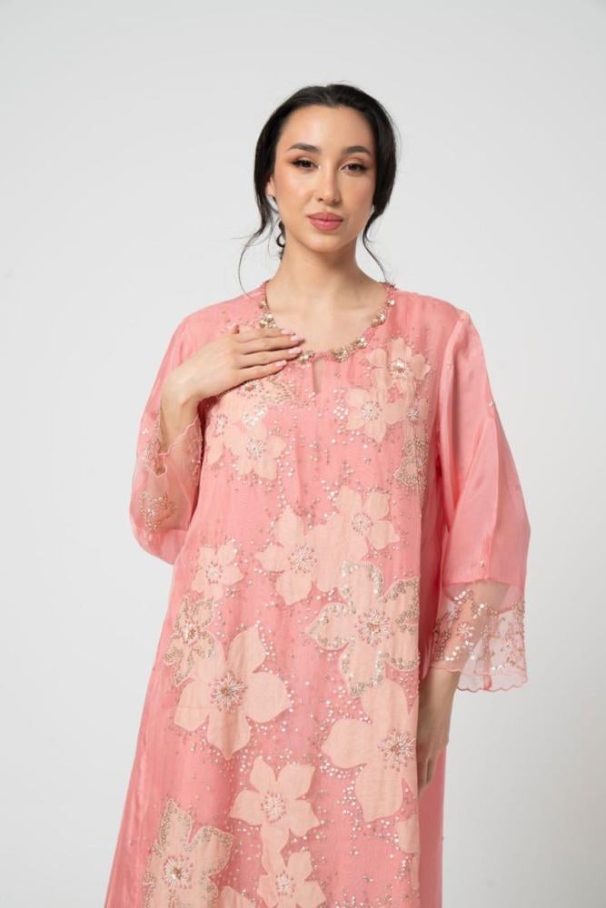 - التطريز اليدوي للوردات يعكس حرفية عالية ويمنحكِ مظهرًا فاخرًا.