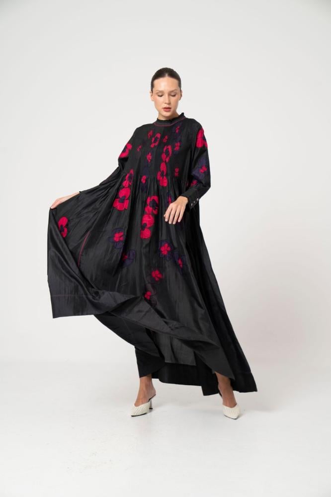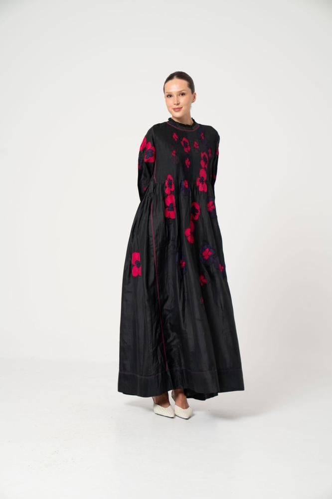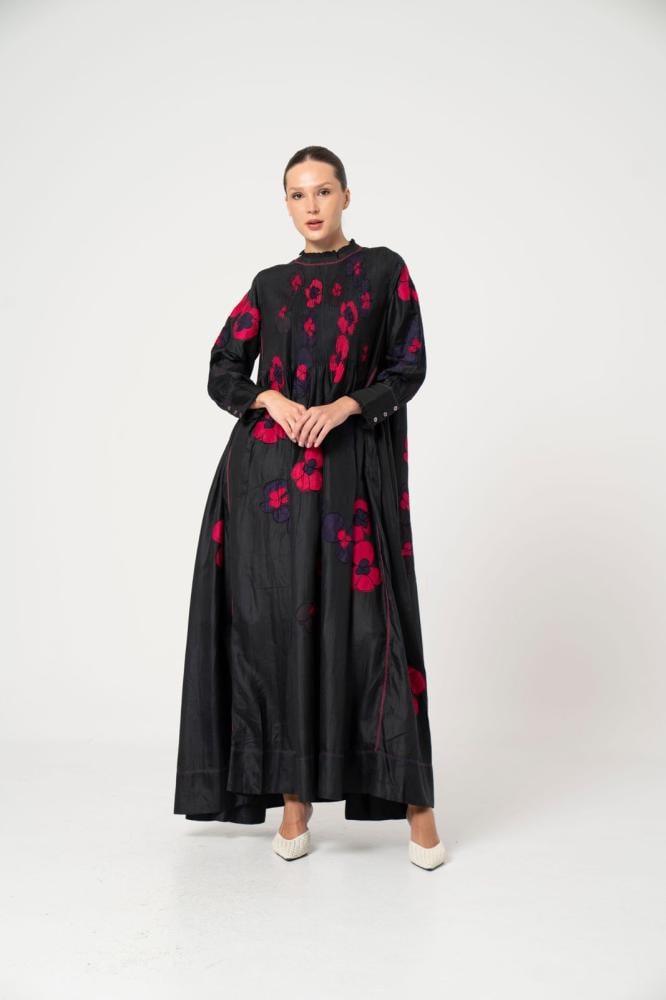 احصلي على فستان حرير اسود مع وردات تطريز من Velvettouch Store وتمتعي بإطلالة متفردة تجمع بين الأناقة والراحة والفخامة مع تفاصيل تطريز دقيقة تضيف لمسة فنية لكل مناسبة.